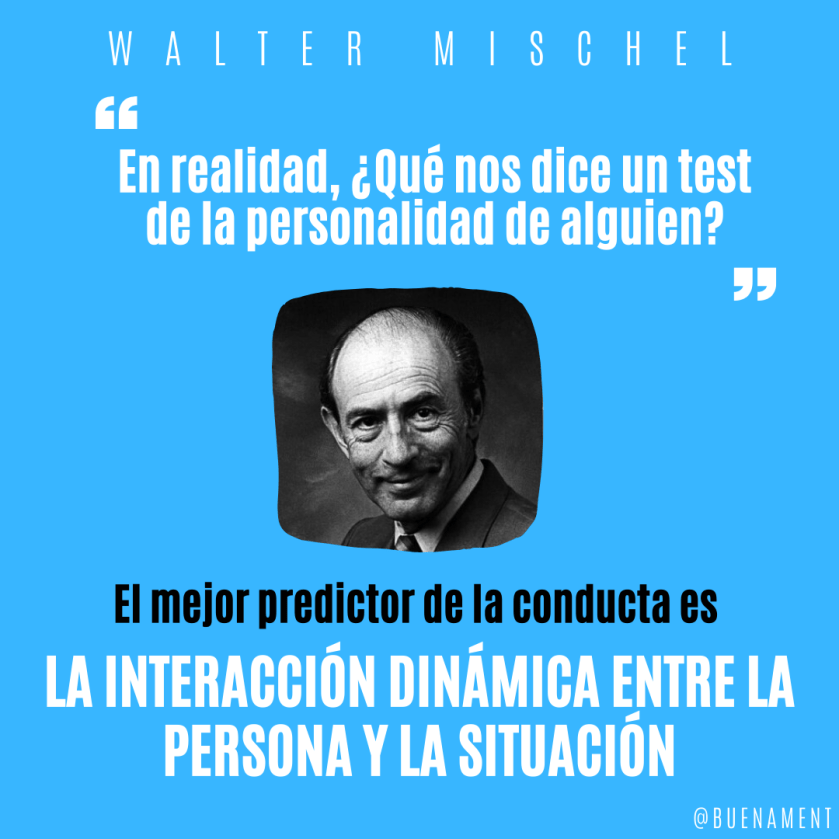Walter Mischel, desmarcándose de los tests clásicos y de esa manera de estudiar la personalidad, diseñó su propio experimento teniendo en cuenta los factores externos y el contexto. Creía que era absurdo no tener en cuenta la interacción de la persona con el entorno.