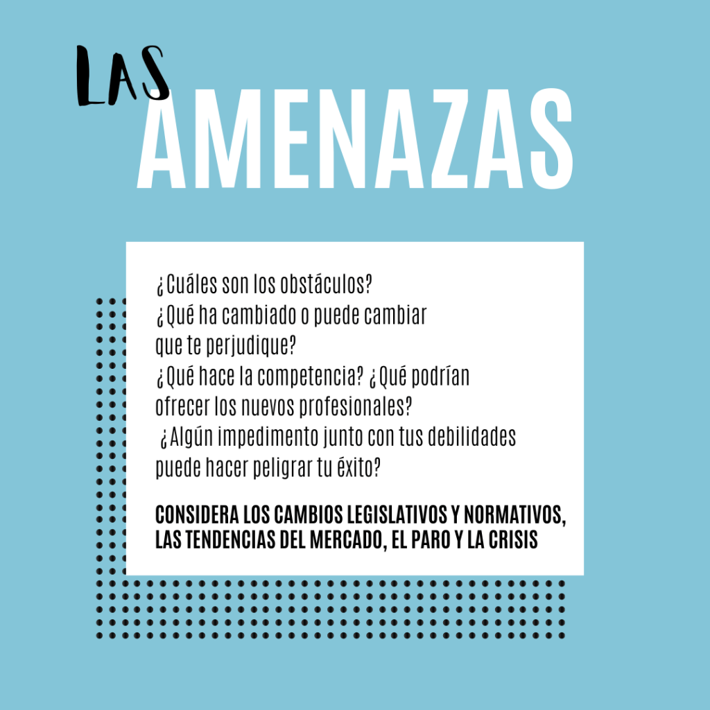 Para reducir tiempo, esfuerzo, sufrimiento y frustración en el camino para llegar a nuestras metas, lo primero de todo es analizar y planificar en base a la realidad. Así reducimos el riesgo de sentirnos insatisfechos por cómo nos ganamos la vida. En el momento de la verdad nos impulsará haber detectado cuáles son las Amenazas y las Oportunidades del entorno, así como nuestras Fortalezas y Debilidades personales.